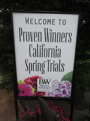 Today was another eventful one at the California Spring Trials (CAST). I hit three more sites with many featuring more than one grower/company. The weather was partly sunny and 70 degrees F and just beautiful. I had excitement on Highway 101 (70 mph) when the vehicle two ahead of me had the hood fold up and bash down on the windshield. Not sure how the seven or eight of us in the vicinity didn't get in to a crash with this car swerving off the road (safely stopped). I toured, photographed and chatted with folks at Benary, Volmary, ABZ Seeds, Speedling, Hem Genetics, Plant Source International, Thompson & Morgan, Vista Farms and Proven Winners today. The three sites weren't far apart but distance can't be measured as "a crow flies" as the rolling topography is a big factor. I was able to see more of the countryside and certainly had no shortage of seeing new and exciting plants! It was nice to chat with so many "green industry" folks who I'll continue to maintain are some of the nicest people around.